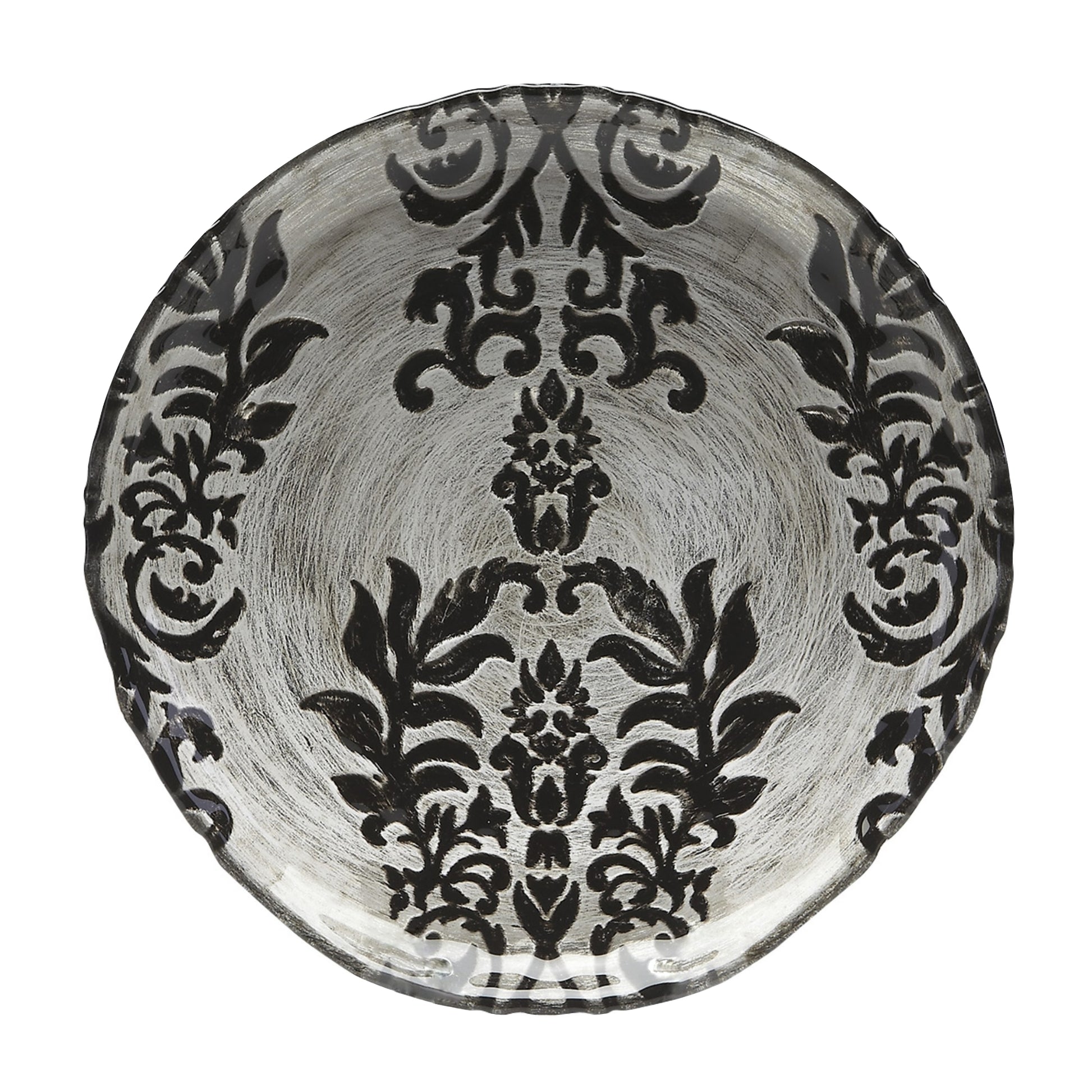 Dating back to the Byzantine period DAMASK is a style of weaving is reversible patterns on fabric. This pattern is brought to you in several colors on this 6.5" sized canapé plate to fit all table settings at your most exclusive dinner parties or to enhance the beauty of your home design.