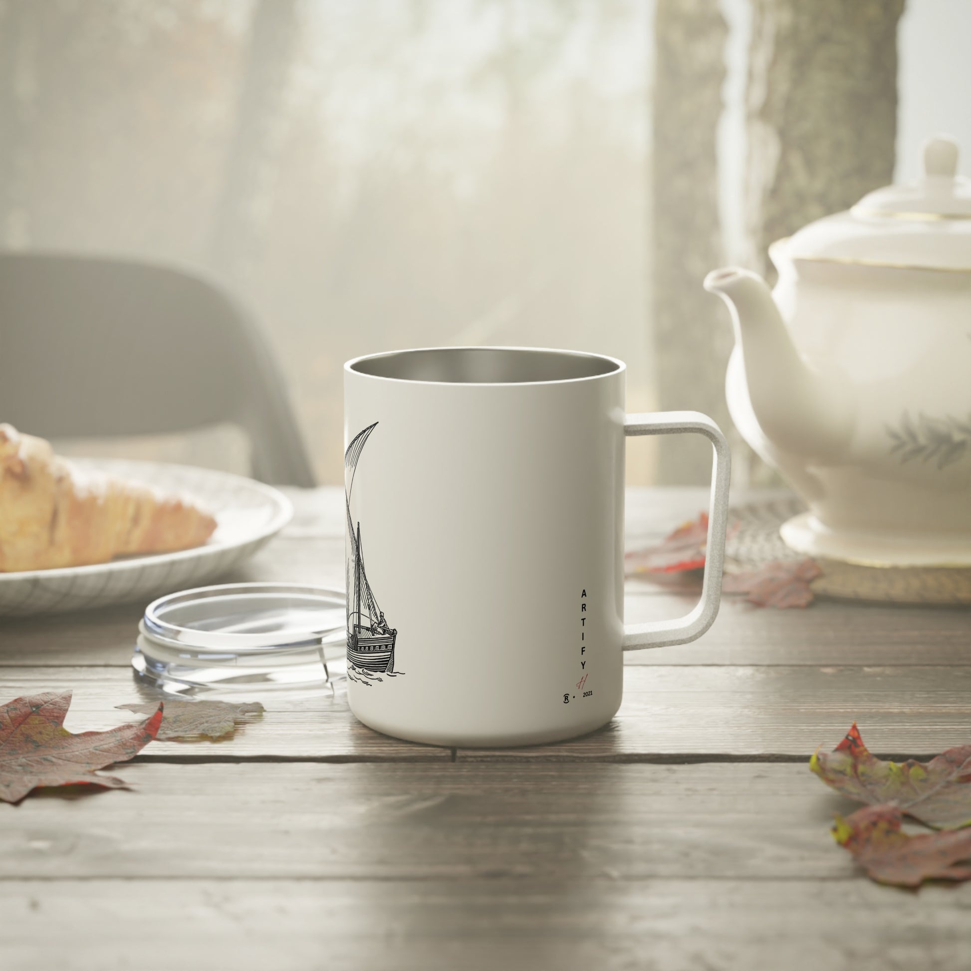 Looking for the best insulated coffee mug in New York? Our Insulated travel mug for sailors NYC Nautical (10oz) is designed for sailors, boat enthusiasts, and ocean lovers who enjoy their coffee on the go. This premium stainless steel mug keeps your drink hot or cold for hours, making it perfect for those sailing across New York Harbor, the Hudson River, or Long Island Sound.
