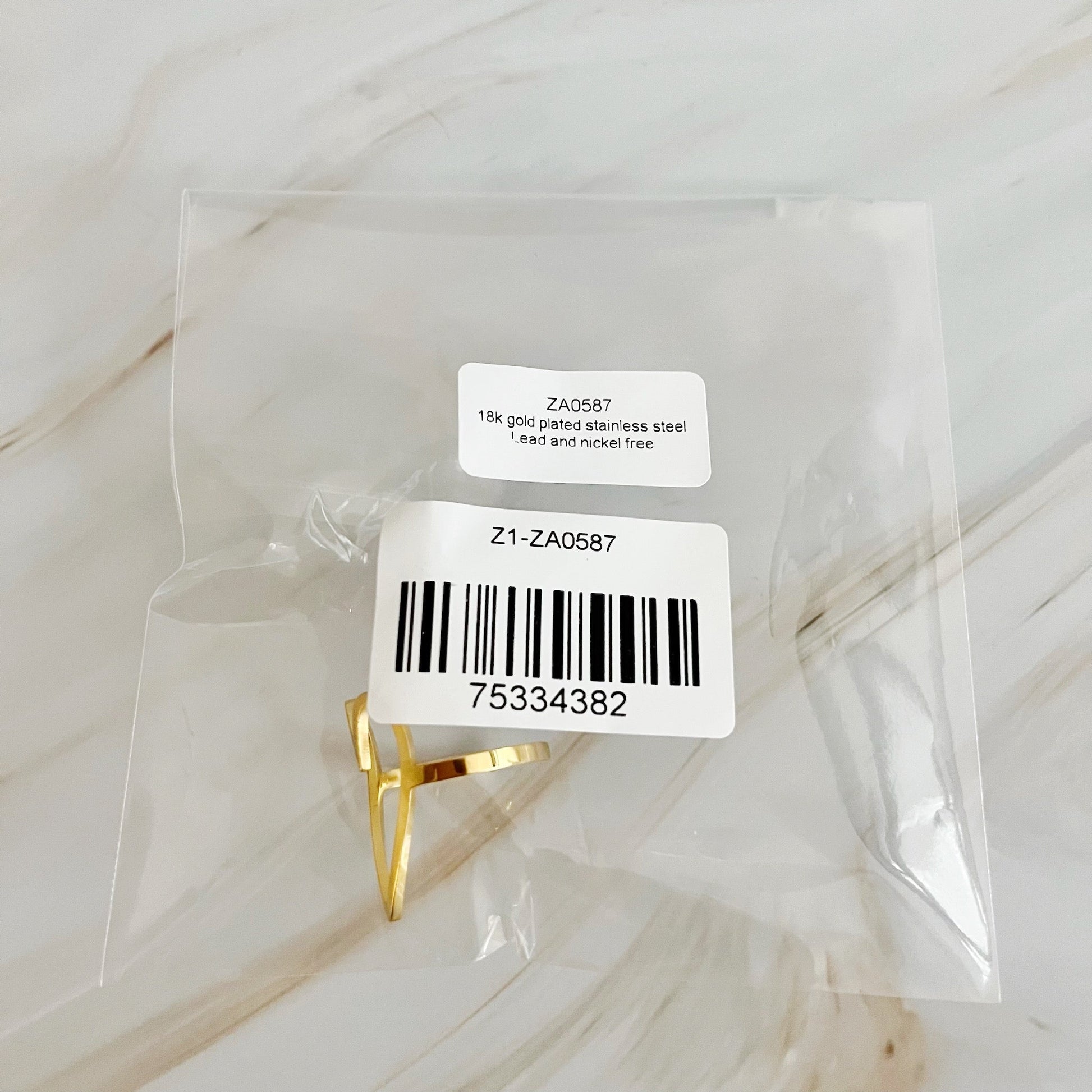 18k gold plated stainless steel, tarnish and water resistant