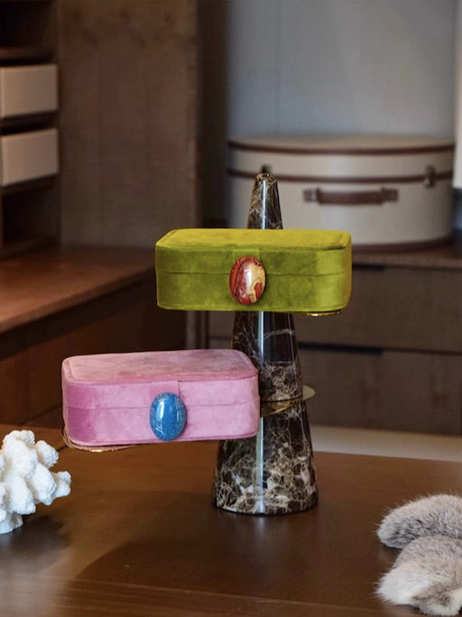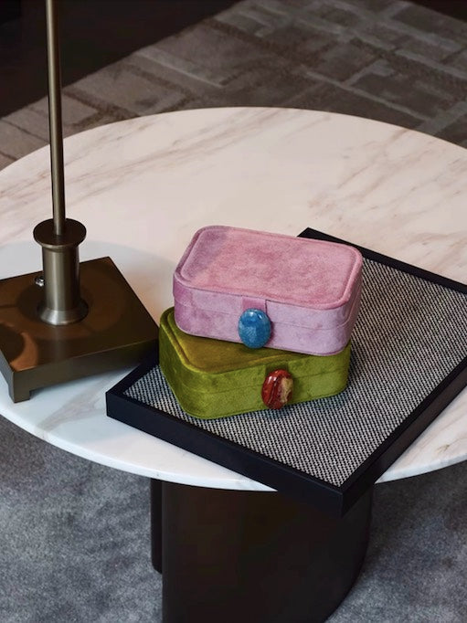 Pebble Jewellery Case, Vintage Velvet Accessory Storage Box Organiser