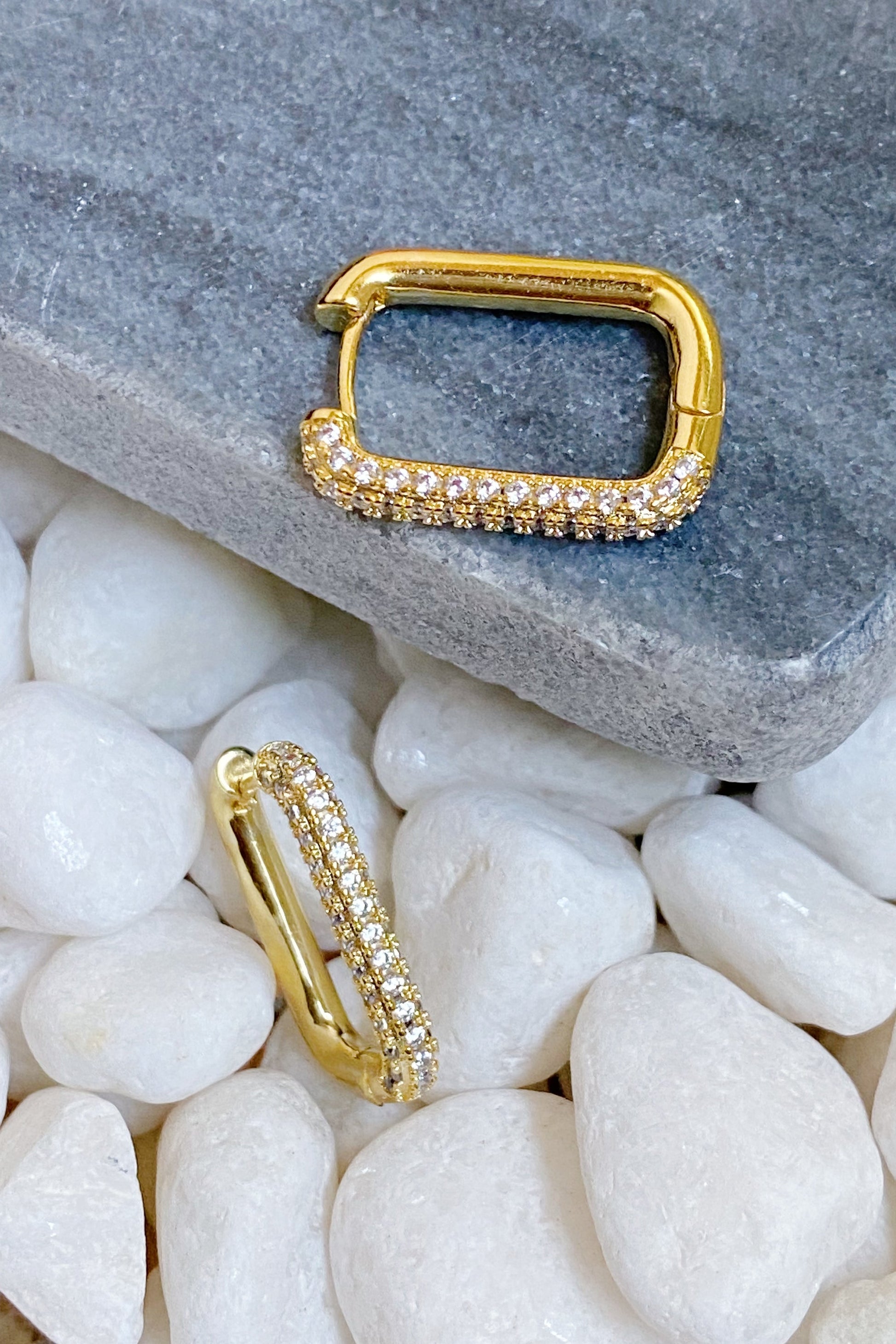 Gorgeous, sparkling hoop earrings. So chic in rectangle shape, perfect size for everyday, dressy enough with sparkly shine!